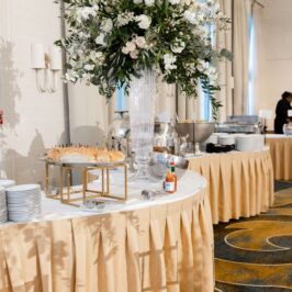 Our services go beyond flowers — we offer rentals for decorative elements like arches, columns, candelabras, fabric draping, and live plants. These pieces add depth and elegance to your ceremony or reception, helping create a fully decorated and cohesive look.