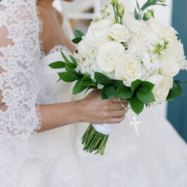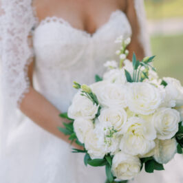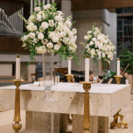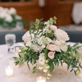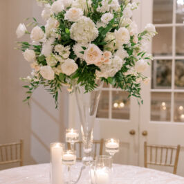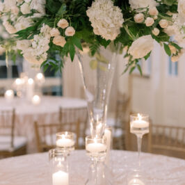 I can’t explain how gorgeous our flowers were for our wedding! The bouquets were ivory, light coral, dark coral roses, and green succulents! I worked with RJ and he was fabulous! I gave him some photos of what I liked and told him how I wanted to combine the best parts of the photos, and a color swatch of my bridesmaids dresses. He did better than I could imagine! Our centerpieces were so pretty and looked very romantic! We had 3 vases of different heights with river rock at the bottom and roses inside the water, with a floating candle on top. They came out perfect! I would use this vendor for any of my flower needs! – Maggie F.