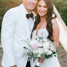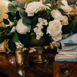 I can’t explain how gorgeous our flowers were for our wedding! The bouquets were ivory, light coral, dark coral roses, and green succulents! I worked with RJ and he was fabulous! I gave him some photos of what I liked and told him how I wanted to combine the best parts of the photos, and a color swatch of my bridesmaids dresses. He did better than I could imagine! Our centerpieces were so pretty and looked very romantic! We had 3 vases of different heights with river rock at the bottom and roses inside the water, with a floating candle on top. They came out perfect! I would use this vendor for any of my flower needs! – Maggie F.