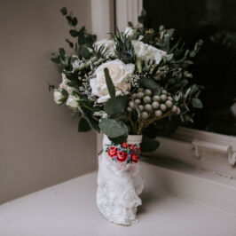 I can’t explain how gorgeous our flowers were for our wedding! The bouquets were ivory, light coral, dark coral roses, and green succulents! I worked with RJ and he was fabulous! I gave him some photos of what I liked and told him how I wanted to combine the best parts of the photos, and a color swatch of my bridesmaids dresses. He did better than I could imagine! Our centerpieces were so pretty and looked very romantic! We had 3 vases of different heights with river rock at the bottom and roses inside the water, with a floating candle on top. They came out perfect! I would use this vendor for any of my flower needs! – Maggie F.