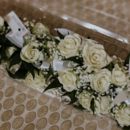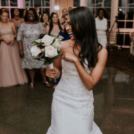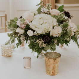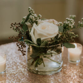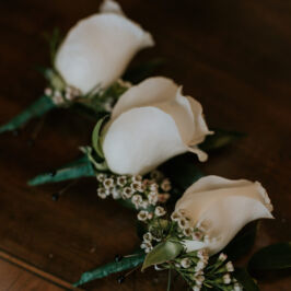 I can’t explain how gorgeous our flowers were for our wedding! The bouquets were ivory, light coral, dark coral roses, and green succulents! I worked with RJ and he was fabulous! I gave him some photos of what I liked and told him how I wanted to combine the best parts of the photos, and a color swatch of my bridesmaids dresses. He did better than I could imagine! Our centerpieces were so pretty and looked very romantic! We had 3 vases of different heights with river rock at the bottom and roses inside the water, with a floating candle on top. They came out perfect! I would use this vendor for any of my flower needs! – Maggie F.