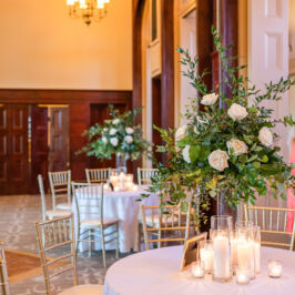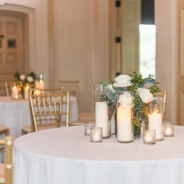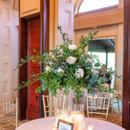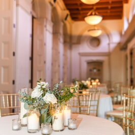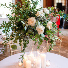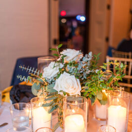 I can’t explain how gorgeous our flowers were for our wedding! The bouquets were ivory, light coral, dark coral roses, and green succulents! I worked with RJ and he was fabulous! I gave him some photos of what I liked and told him how I wanted to combine the best parts of the photos, and a color swatch of my bridesmaids dresses. He did better than I could imagine! Our centerpieces were so pretty and looked very romantic! We had 3 vases of different heights with river rock at the bottom and roses inside the water, with a floating candle on top. They came out perfect! I would use this vendor for any of my flower needs! – Maggie F.
