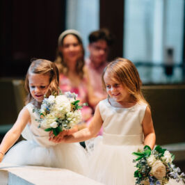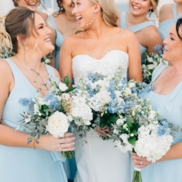 I can’t explain how gorgeous our flowers were for our wedding! The bouquets were ivory, light coral, dark coral roses, and green succulents! I worked with RJ and he was fabulous! I gave him some photos of what I liked and told him how I wanted to combine the best parts of the photos, and a color swatch of my bridesmaids dresses. He did better than I could imagine! Our centerpieces were so pretty and looked very romantic! We had 3 vases of different heights with river rock at the bottom and roses inside the water, with a floating candle on top. They came out perfect! I would use this vendor for any of my flower needs! – Maggie F.